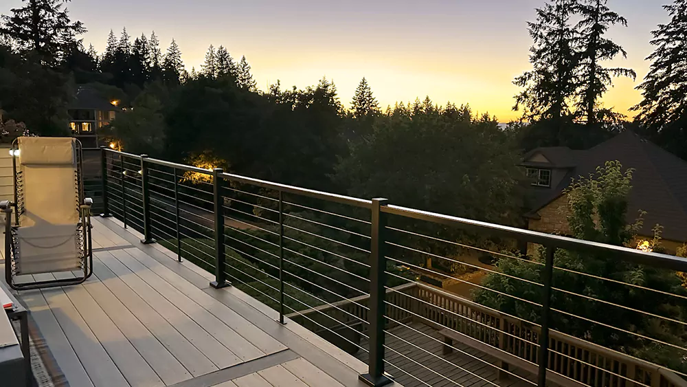 Vionta produziert Edelstahl-Kabelgeländersysteme für Wohn- und Gewerbegebäude. Unser Deck-Kabelgeländersystem ist einfach zu installieren, eignet sich für Kabelgeländeranwendungen im Innen- und Außenbereich und weist niedrige Wartungskosten auf. Das robuste und leichte Kabelgeländer sorgt für eine ungehinderte Sicht und bietet gleichzeitig Sicherheitsschutz rund um Treppen, Säulenhallen, Decks, Plattformen und Docks, was es zur beliebtesten Wahl für Decksgeländer in jedem neuen Gebäude oder bei Renovierungsprojekten für Privat- und Gewerbebauten macht.