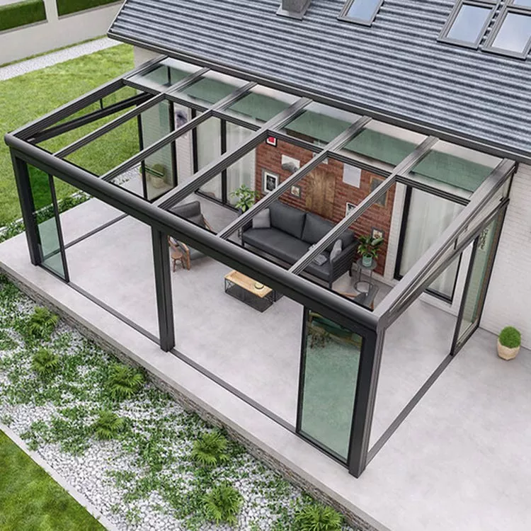 Optionales energiesparendes Low-E-Glas: blockiert UV-Strahlen, reduziert die Wärmeaufnahme, sorgt für Transparenz im Innenbereich, kann auch in Verbindung mit Seitenvorhängen oder Sonnenschirmen verwendet werden.