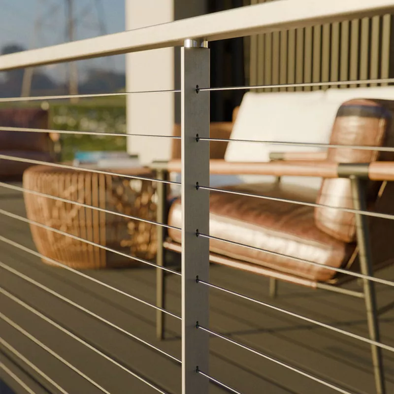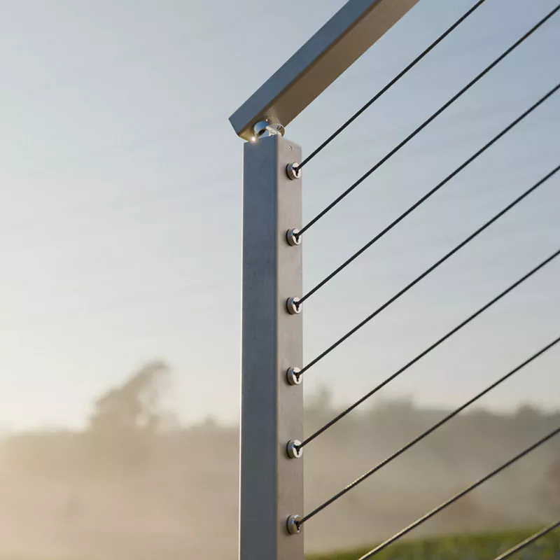 Ein Edelstahl-Kabelgeländer ist, vereinfacht gesagt, ein Geländersystem, das Edelstahlkabel anstelle herkömmlicher Geländerstangen oder Glas verwendet. Es besteht typischerweise aus Pfosten, einem oberen Handlauf und mehreren horizontalen Kabeln. Das Gesamtdesign ist minimalistisch, optisch transparent und behindert die Sicht nicht.