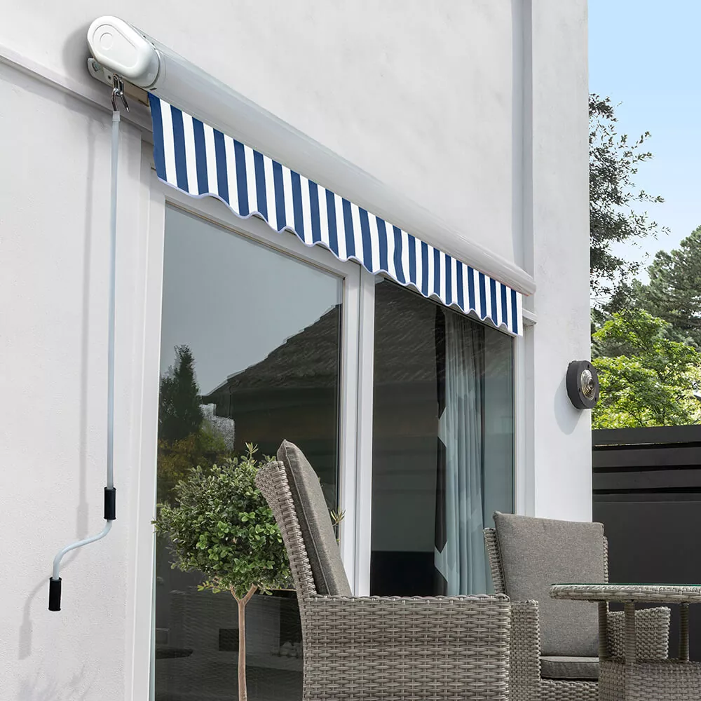 A: Die Metallmarkise ist für normale Wetterbedingungen geeignet. Es wird empfohlen, es vor starkem Wind oder Regenschauer zurückzunehmen, um die Sicherheit zu gewährleisten und die Lebensdauer zu verlängern.